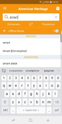 • Search autocomplete helps find words quickly by displaying predictions as you type