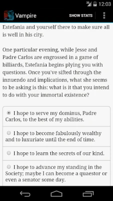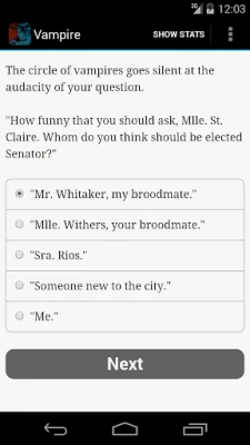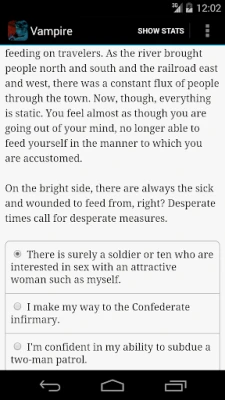 "Choice of the Vampire" is an epic interactive novel by Jason Stevan Hill. It's entirely text-based, 900,000 words and hundreds of choices, without graphics or sound effects, and fueled by the vast, unstoppable power of your imagination.