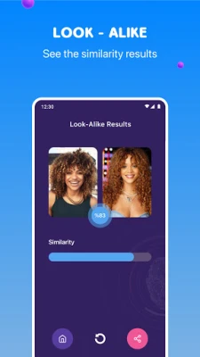 Thanks to DNA Analysis support, you can see the similarity between you by adding a photo of someone you think looks like you. Thanks to the Look-Alike feature, you can see what percentage of your similarity is. Our DNA analysis feature examines the similarity of your face shape, skin color, jaw structure, eye color and shape and calculates your similarity to each other with the help of AI in the most accurate way. Thanks to the Look-Alike feature, you can also find out how similar you are to a celebrity you love and your similarity rate.