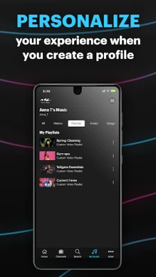 Your music, your choice. Favorite artists and videos you love or create your own music video playlists.