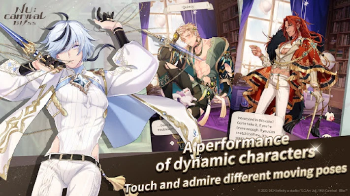 The game's characters are all animated. By touching the characters in different places, they will react in ways showing unexpected contrasts. You can even change how much the characters' clothes reveal for an interactive experience combining sight, sound, and touch. Depending on the rarity of the characters, their outfits become increasingly luxurious; their dialogues become richer following birthdays, events, and intimacy to create a strong sense of companionship.