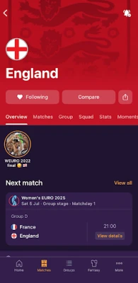 - Personalise your feed by selecting the football teams you’re interested in from both Women's EURO 2025 and Nations League.