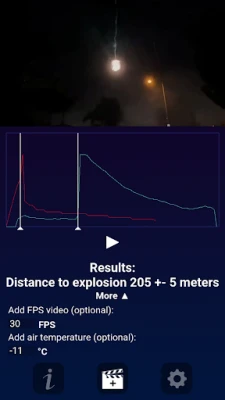 "Where Is Explosion?" - is an application designed to determine the distance to an explosion based on video, whether it is a lightning strike, a firework explosion or any other explosion. The main requirements: the presence of a flash and the sound of an explosion on the video.